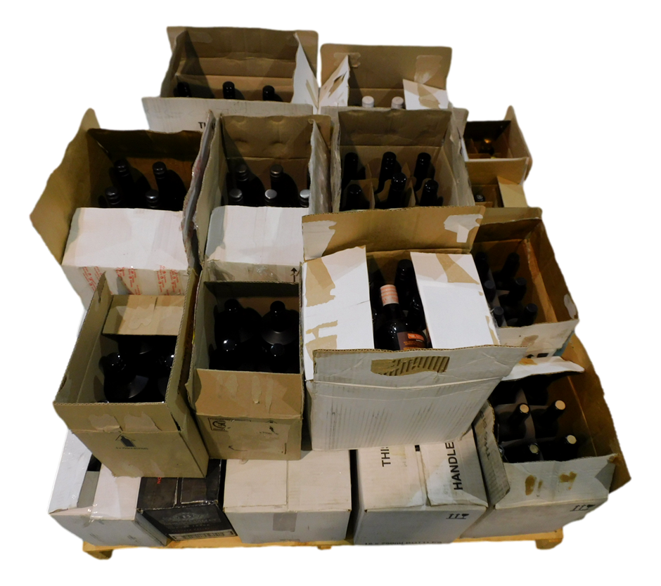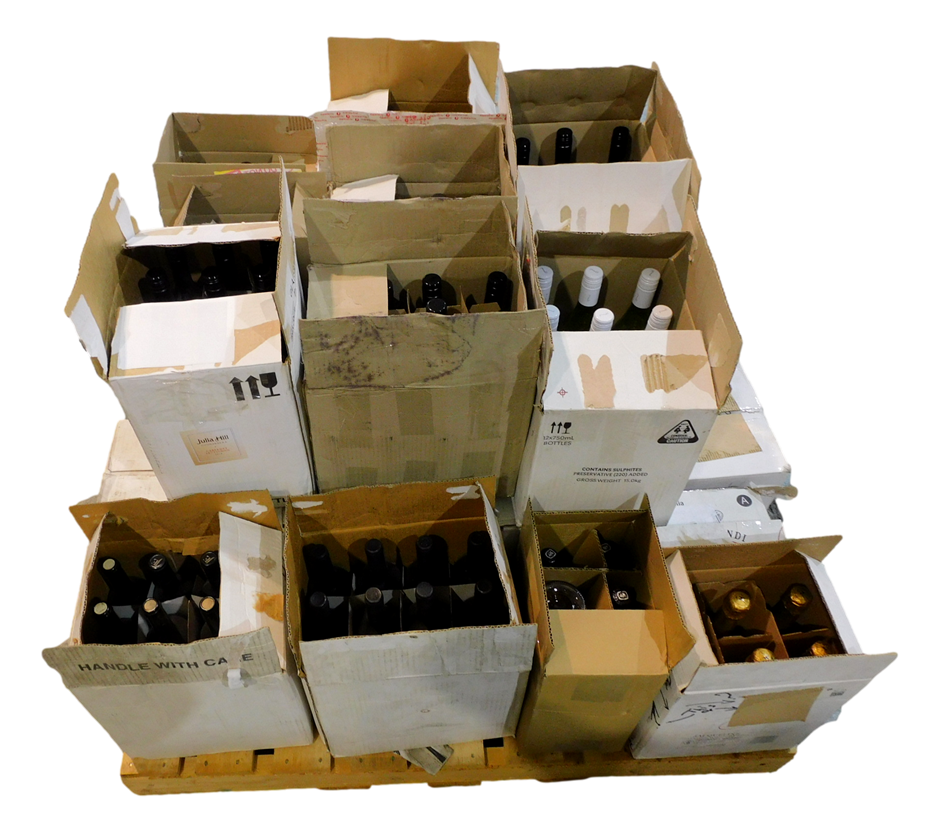 Pallet has been consolidated from bits and bobs in the warehouse. Some wines have been repacked into new cartons