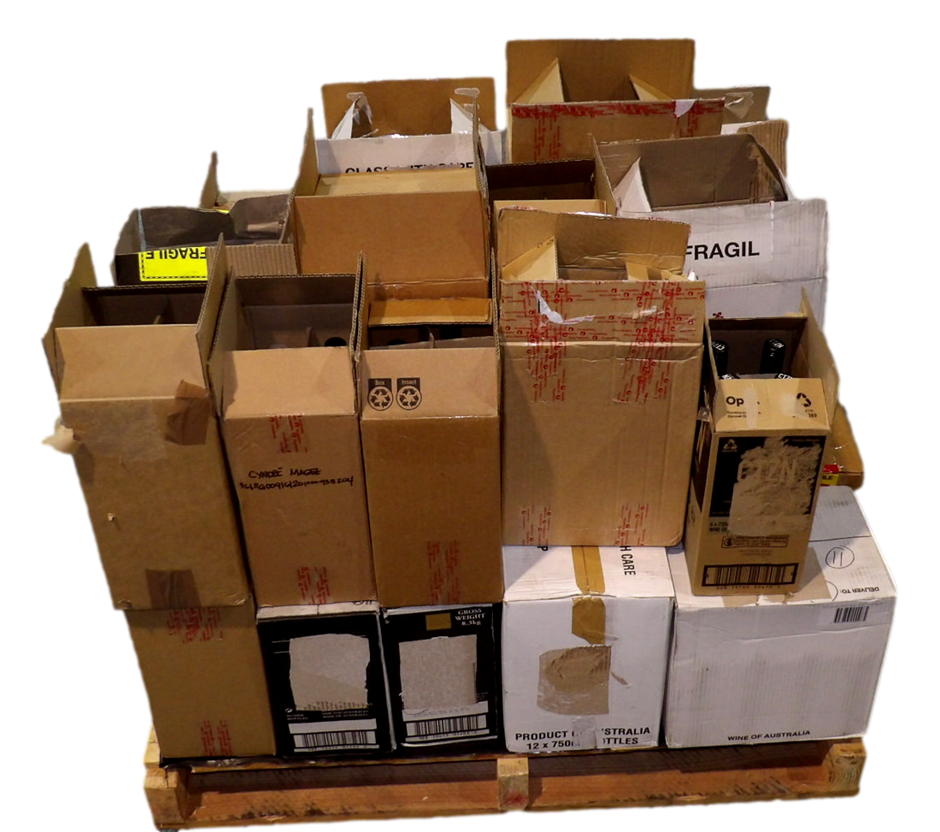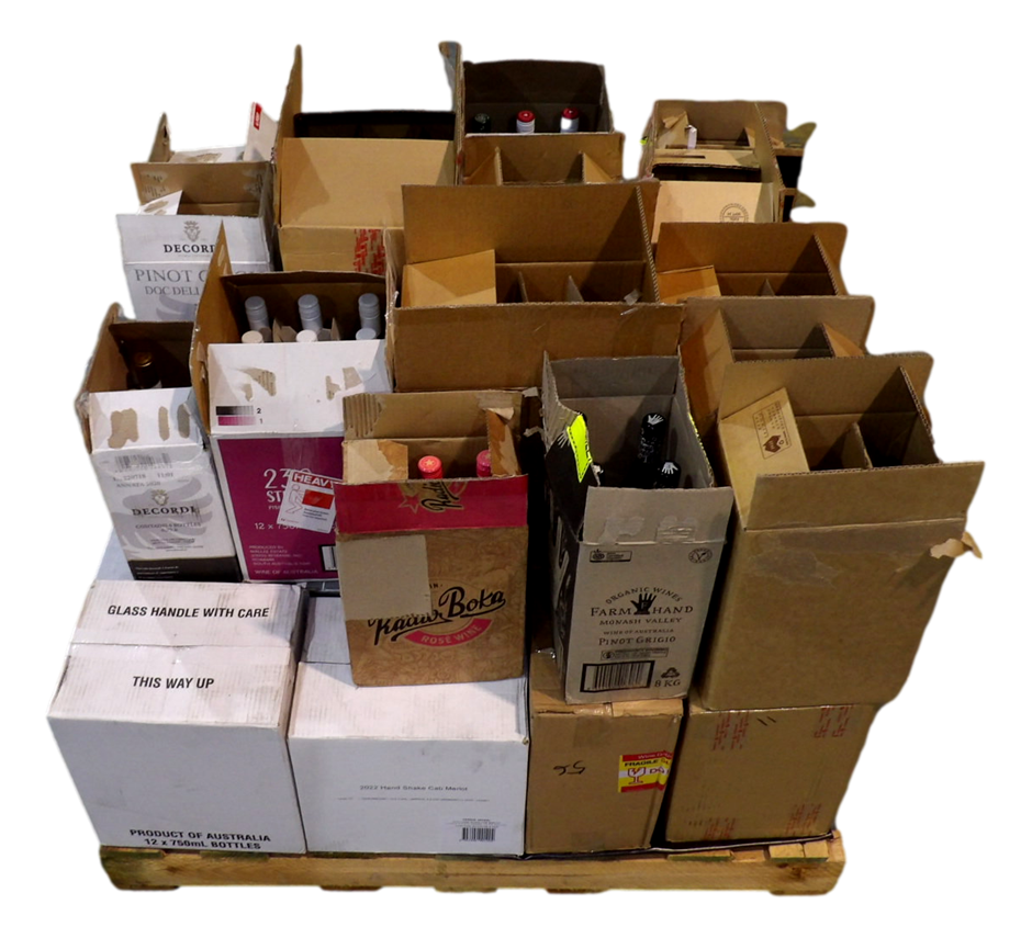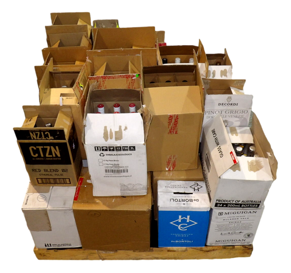 Pallet has been consolidated from bits and bobs in the warehouse. Some wines have been repacked into new cartons