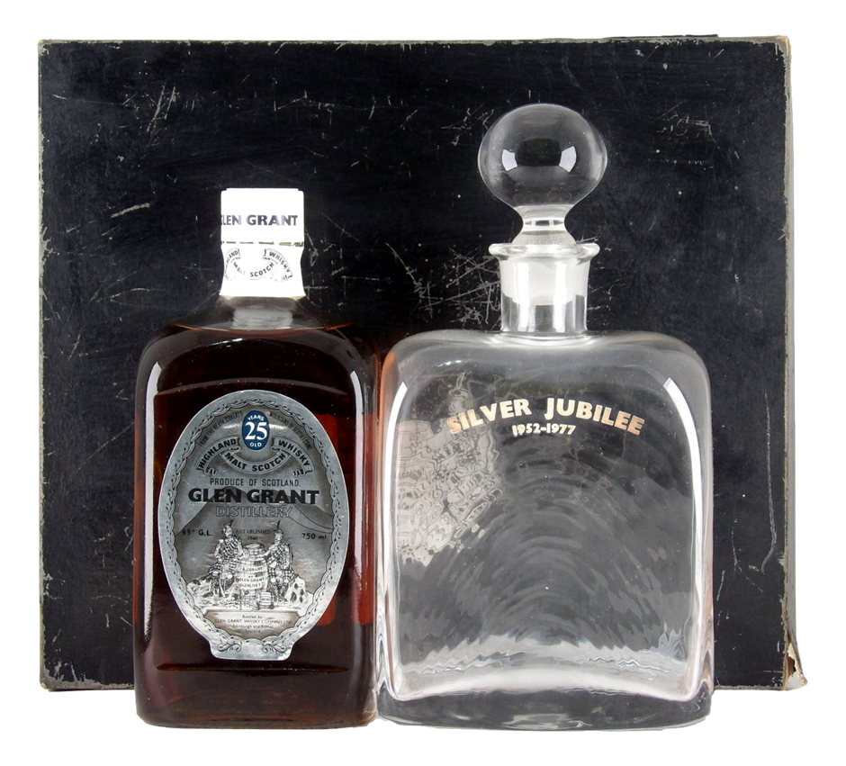 Glen Grant Higland Malt Whiskey 25yr old Silver Jubilee Bottle & decanter set 1952-1977 (1x 750mL).