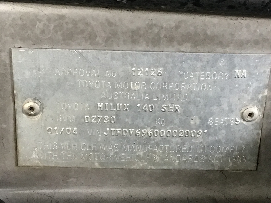| Part of Sale | 2004 Toyota Hilux (4x4) Turbo Diesel SR5 Manual Dual Cab | ||||||||||