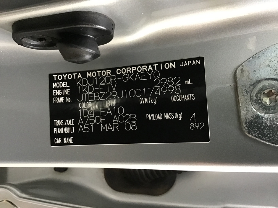 2008 Toyota LandCruiser Prado GX KDJ120R T/Diesel Automatic 7 Seats Wagon