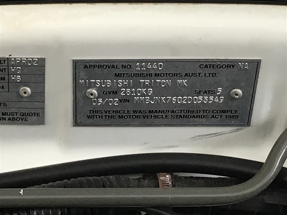 | Part of Sale | 2002 Mitsubishi Triton GLX (4x4) MK Manual Dual Cab | ||||||||||||||