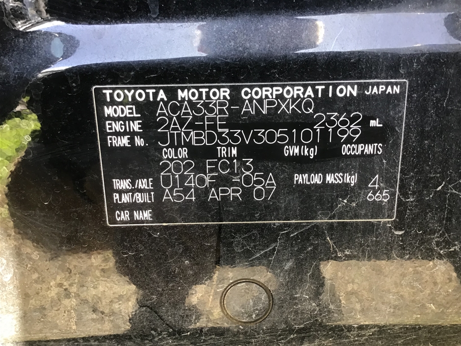 2007 Toyota Rav 4 CV ACA33R Automatic Wagon