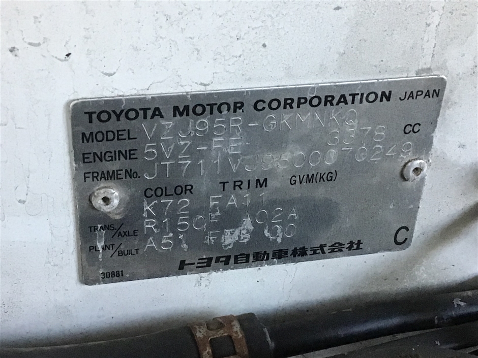 Part of Sale 2000 Toyota Landcruiser Prado GXL (4x4) VZJ95R Man 7Sts Wgn