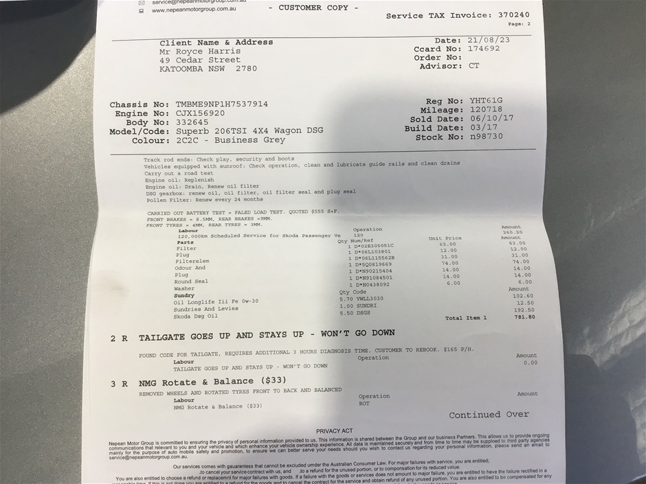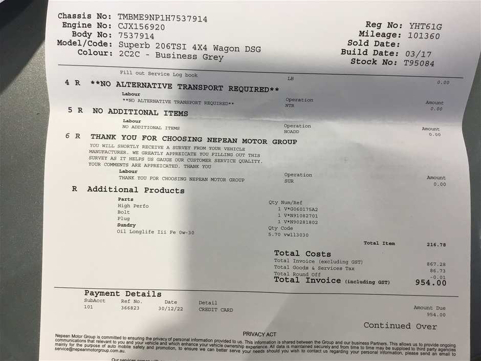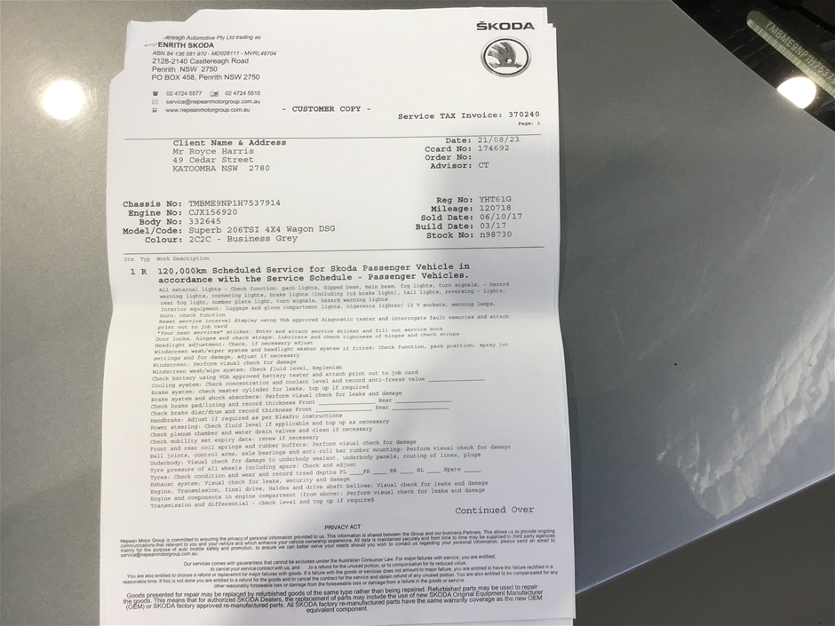 | Part of Sale | 2017 Skoda Superb 206TSI 4x4 NP Automatic Wagon | ||||||||||||||