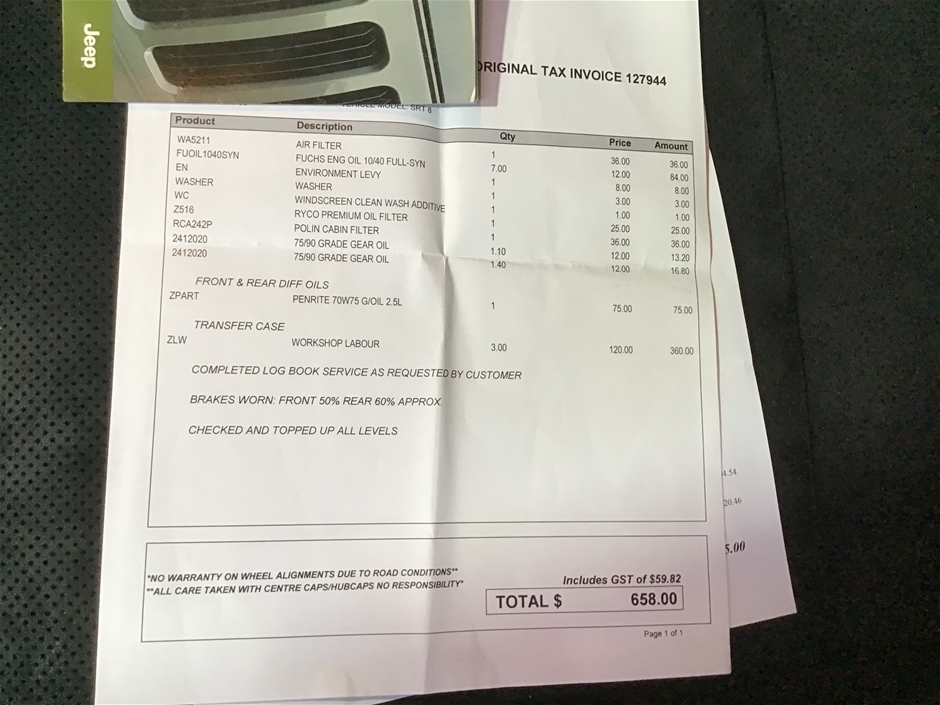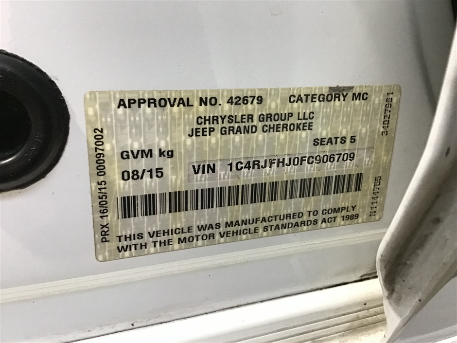 Part of Sale 2015 Jeep Grand Cherokee SRT WK Automatic - 8 Speed Wagon