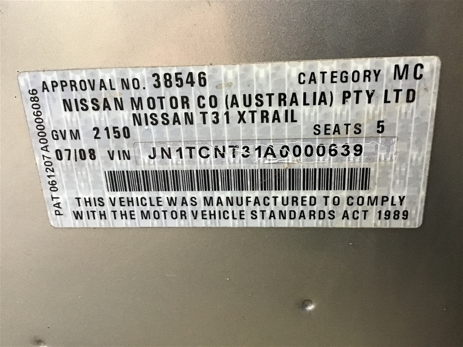 | Part of Sale | 2008 Nissan X-Trail TS (4x4) T31 Turbo Diesel Manual Wagon | ||||||||||||||