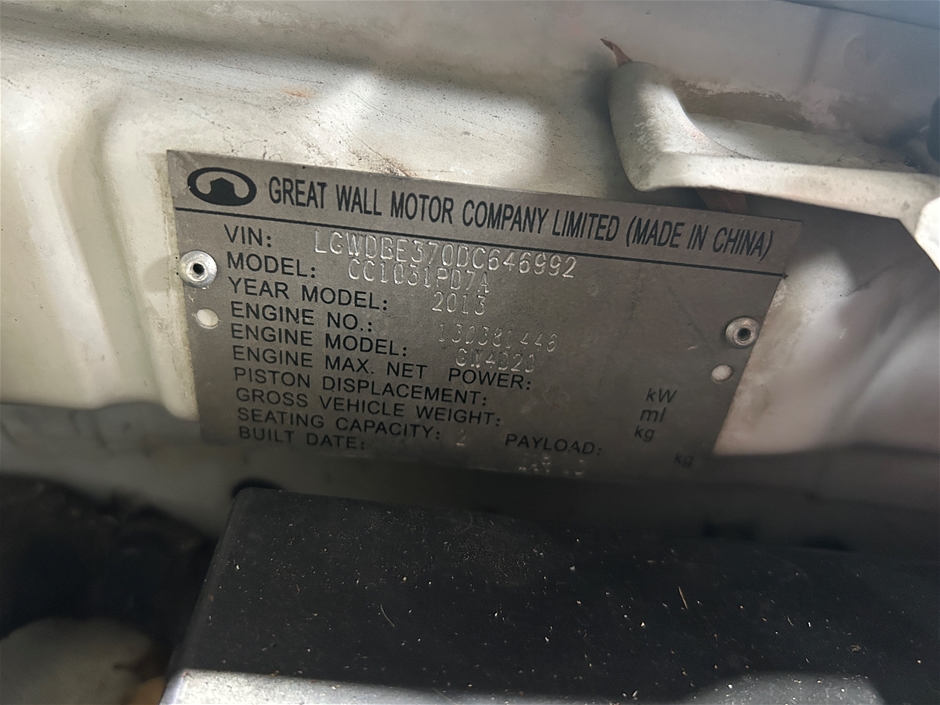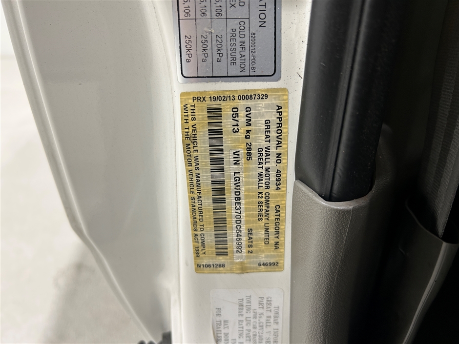 | Part of Sale | 2013 Great Wall V200 4X4 K2 Turbo Diesel Manual Cab Chassis | ||||||||||||||