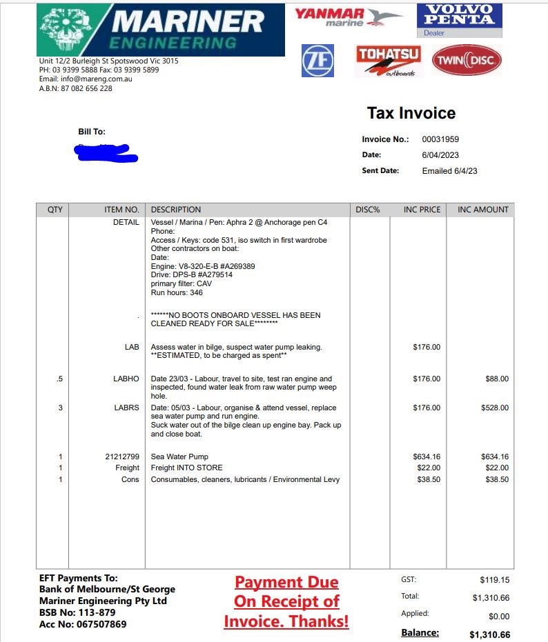 Item condition is `Used`, please refer to Product Condition tab for definition. Sale is on As is Where is basis. No Statutory Warranty/Cooling off periods apply. Sale description is a guide only as vessel may have unsighted damage/issues. Full inspection is recommended.