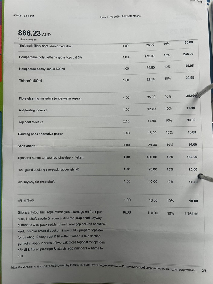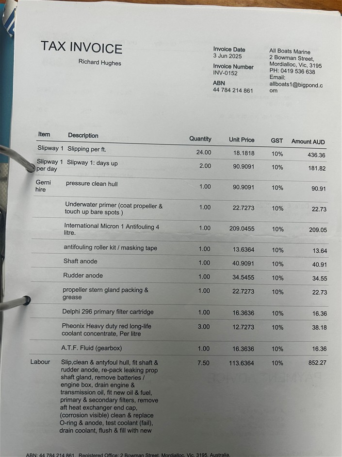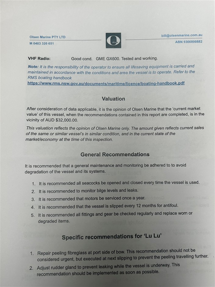 Item condition is `Used`, please refer to Product Condition tab for definition. Sale is on As is Where is basis. No Statutory Warranty/Cooling off periods apply. Sale description is a guide only as vessel may have unsighted damage/issues. Full inspection is recommended.