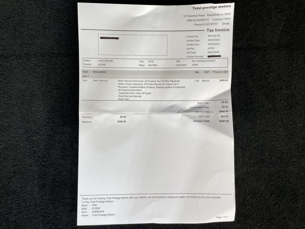 Any payment enquiries, please email accountsreceivable@grays.com.au