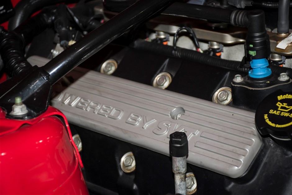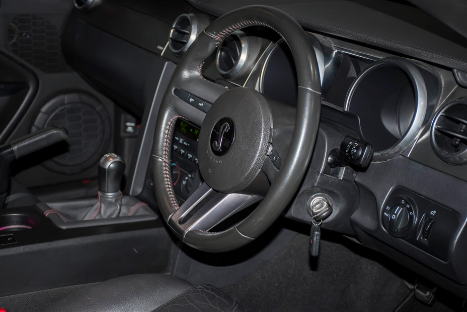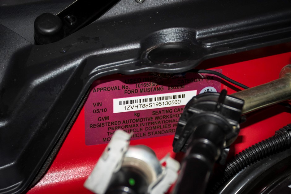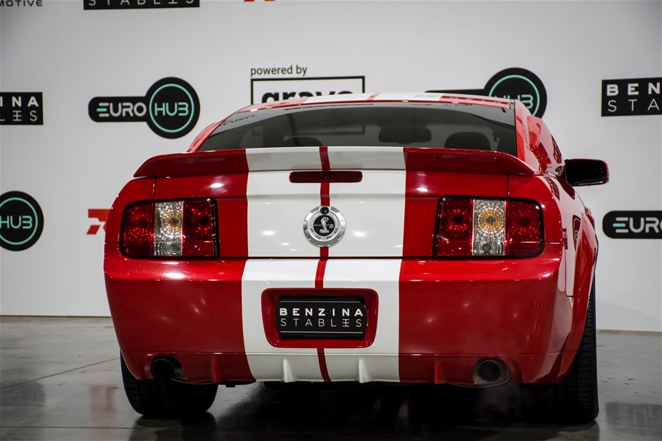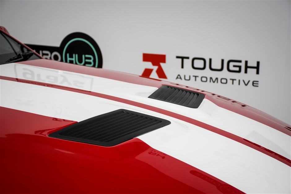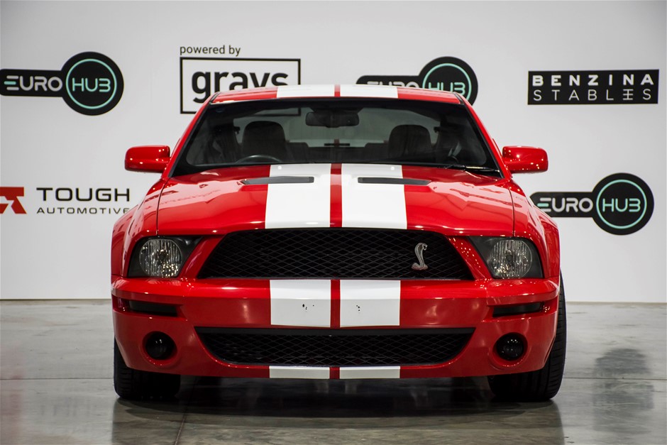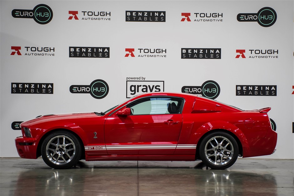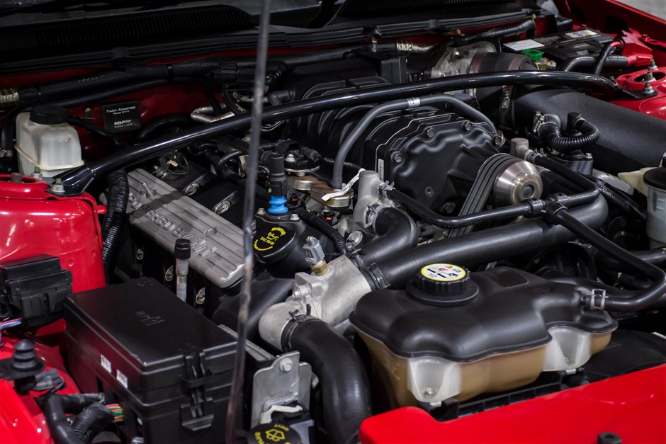 The car was purchased by the current owner almost 10 years ago. The car has previously been converted by Performax in QLD. The car is finished in Torch Red with white stripes and features all of the usual Shelby GT500 styling with unique body kit and badging. The car has been fitted with an extra scoop panel on the side and infill panels over the rear side windows. The car sits on a set of genuine factory Shelby 18” SVT wheels.