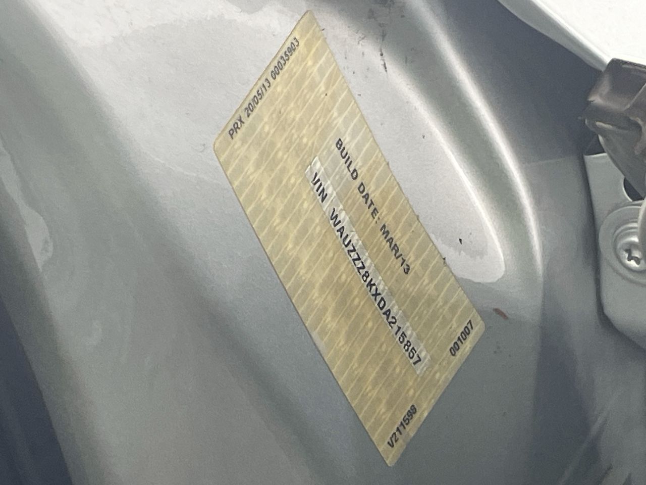 • VIN: WAUZZZ8KXDA215857