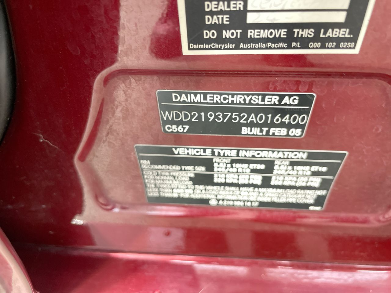 (SN:WDD2193752A016400) (130451-2386)