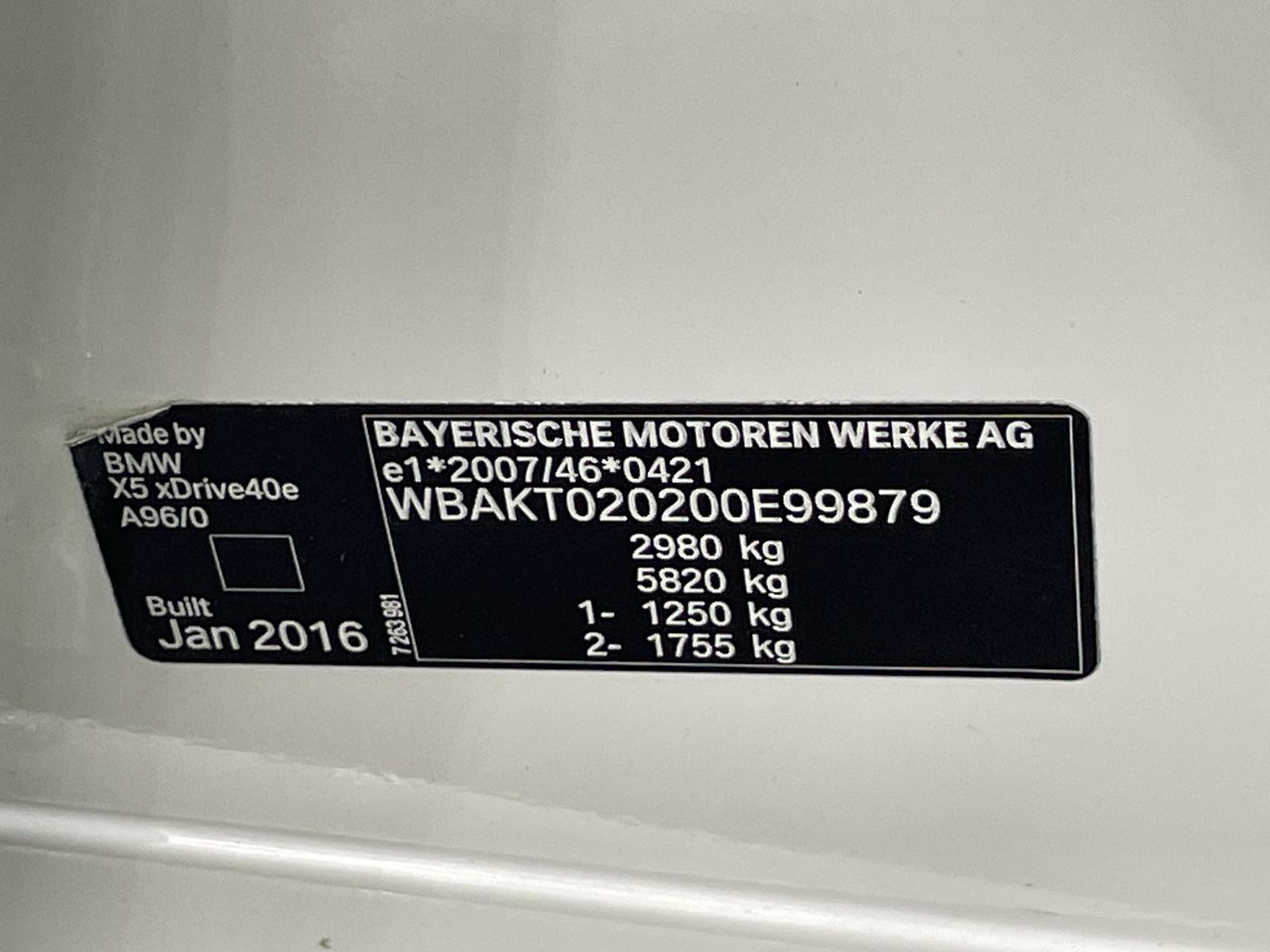 Part of Sale 2016 BMW X5 xDrive 40e iPERFORM F15 Auto - 8 Speed Wagon