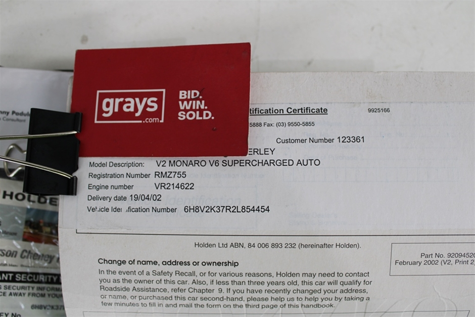 | Part of Sale | 2002 Holden Monaro CV6 V2 Automatic Coupe | ||||||||||||||