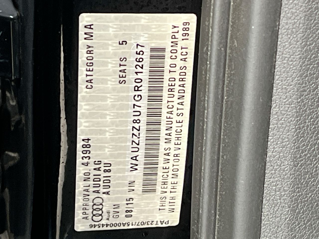 (SN:WAUZZZ8U7GR012657) (115495-17)
