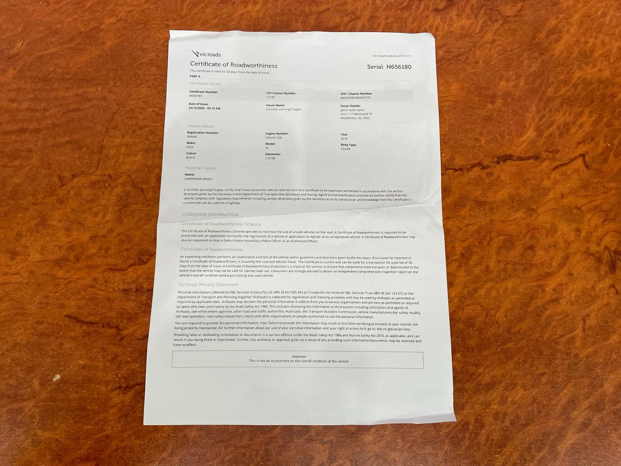 For further advice and information regarding Registration in VIC please refer to VIC Roads Clicking Here