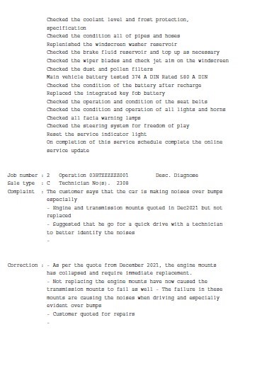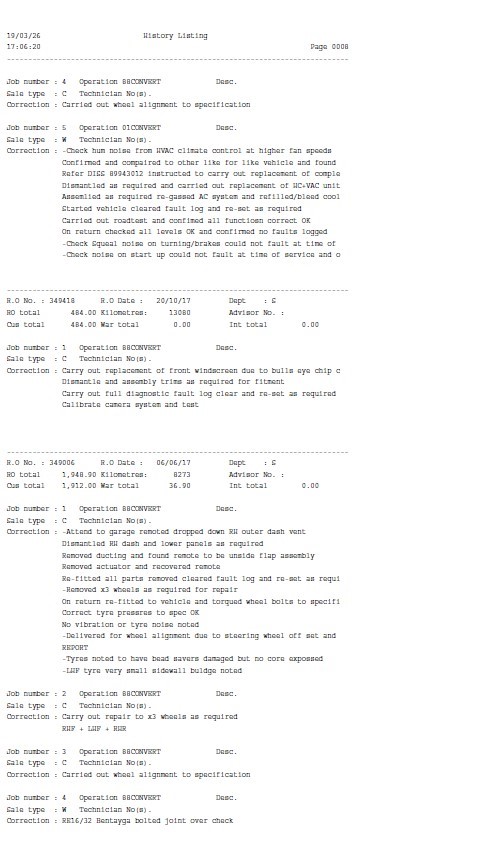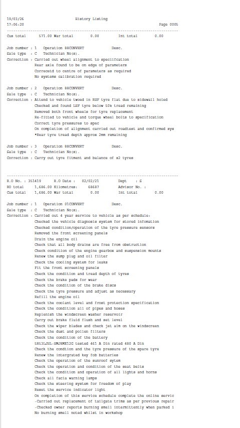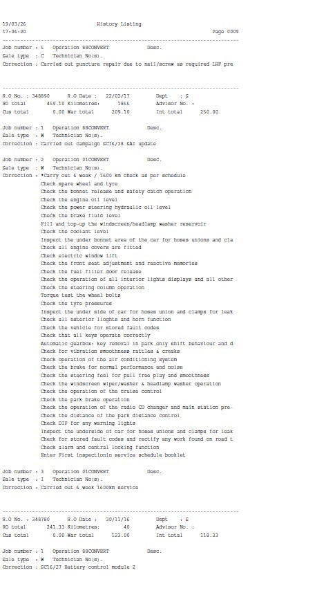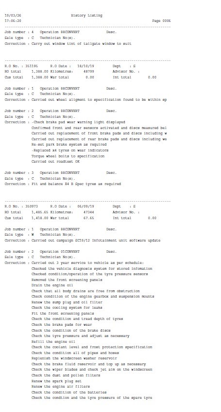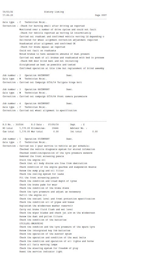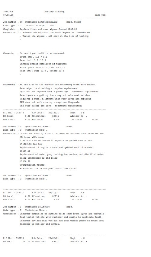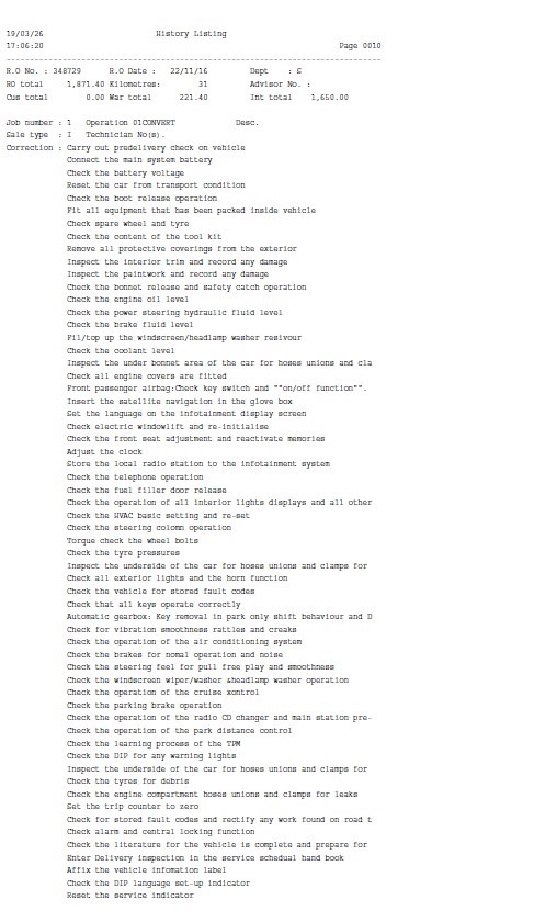 • Service History: Partial