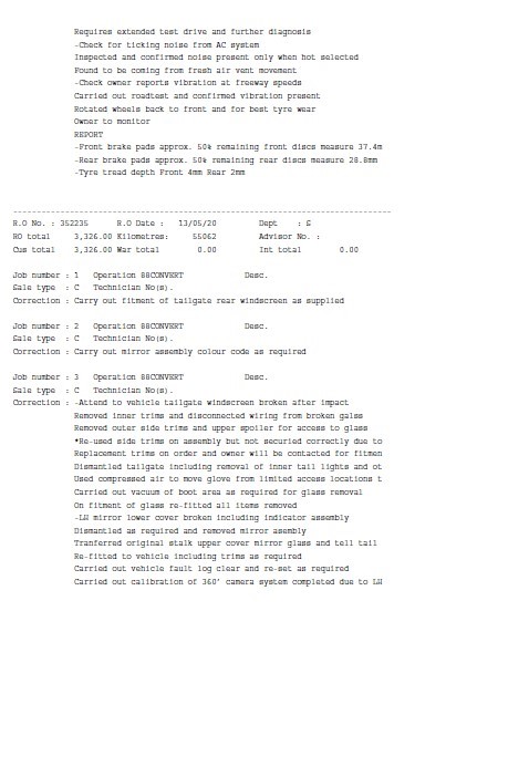 • Comment: Paint touch ups around vehicle – Minor damage to front passenger guard & bumper