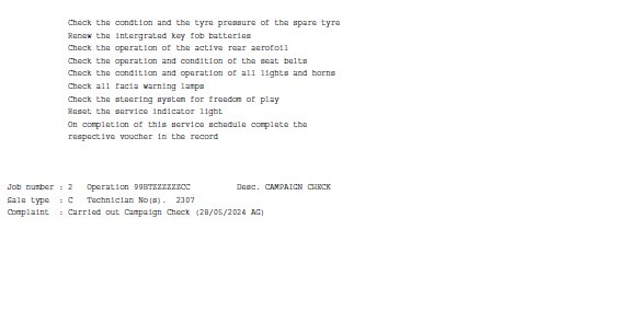• Dents or marks on body consistent with age and kilometres.