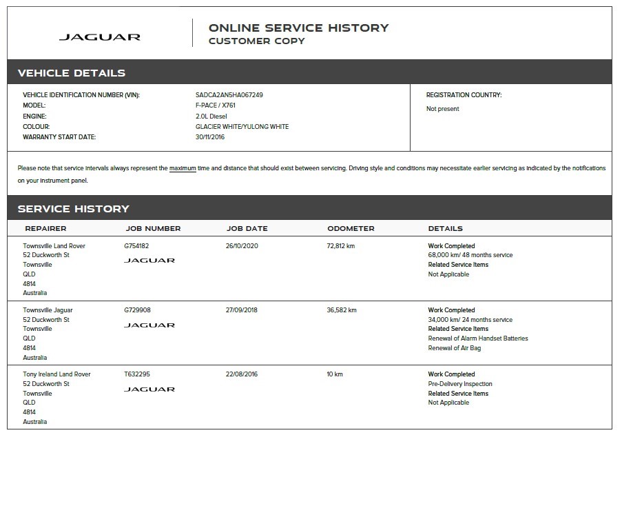 • Service History: Yes - Online extract