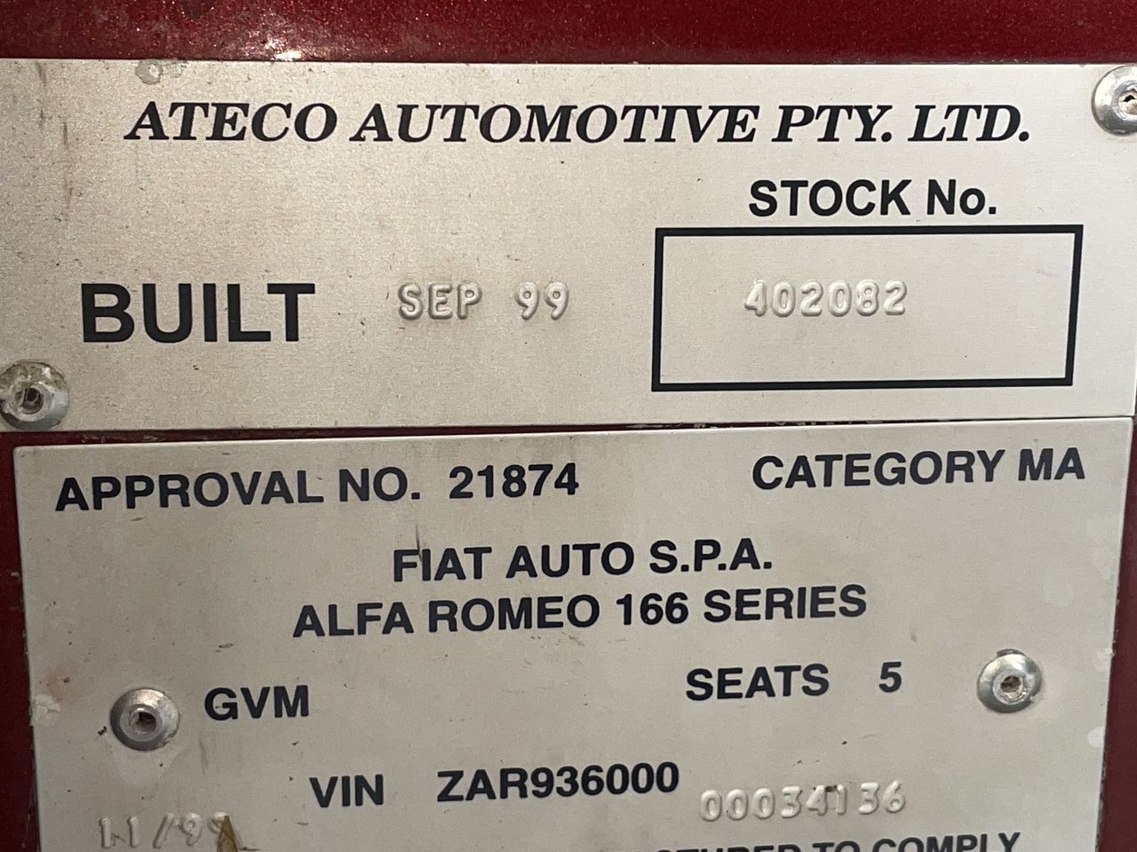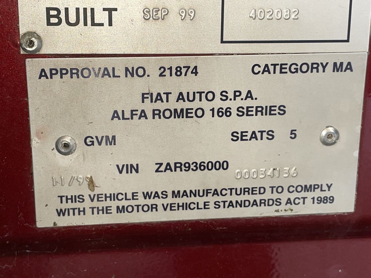 | Part of Sale | 1999 Alfa Romeo 166 3.0 V6 Auto | ||||||||||