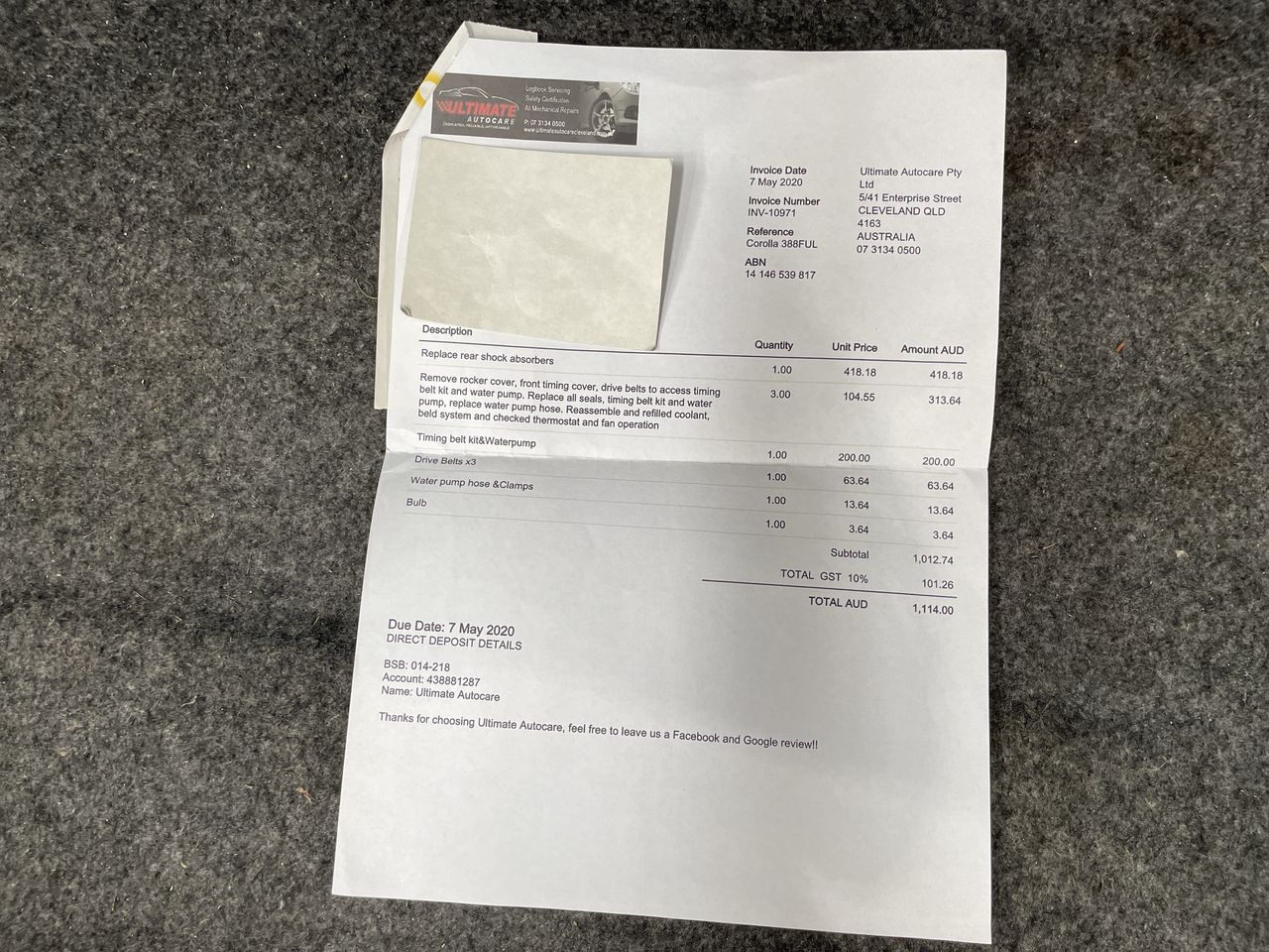 Any payment enquiries, please email accountsreceivable@grays.com.au