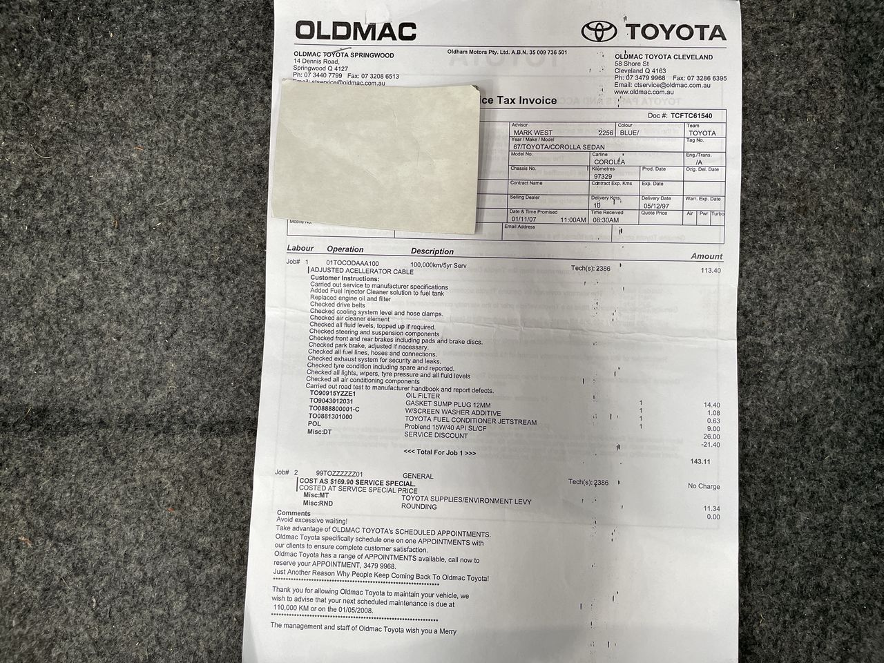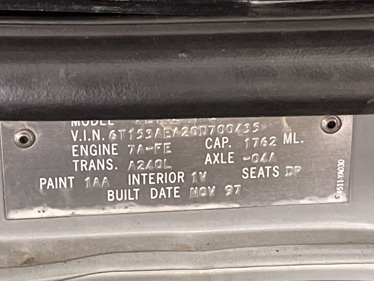 | Part of Sale | 1997 Toyota Corolla Conquest AE102 Auto | ||||||||||