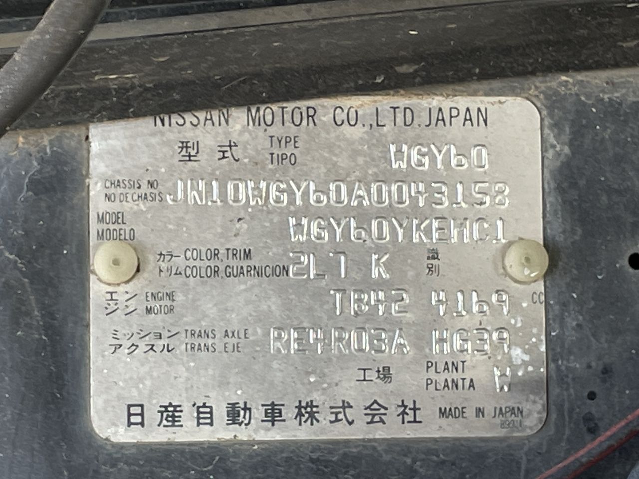 (SN:JN10WGY60A0043158) (119170-1)