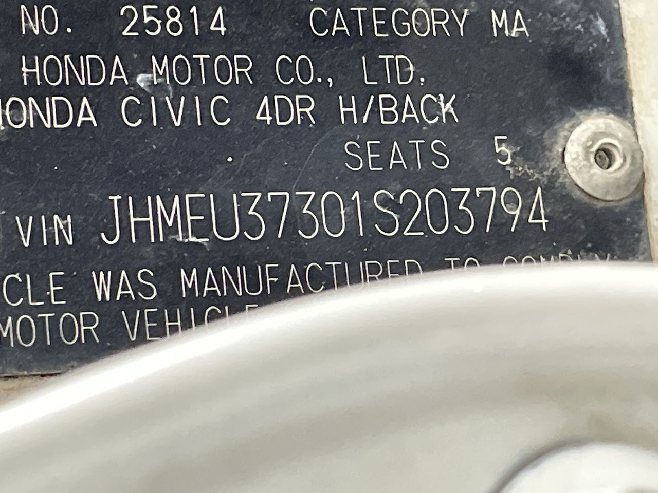 (SN:JHMEU37301S203794) (119053-78)