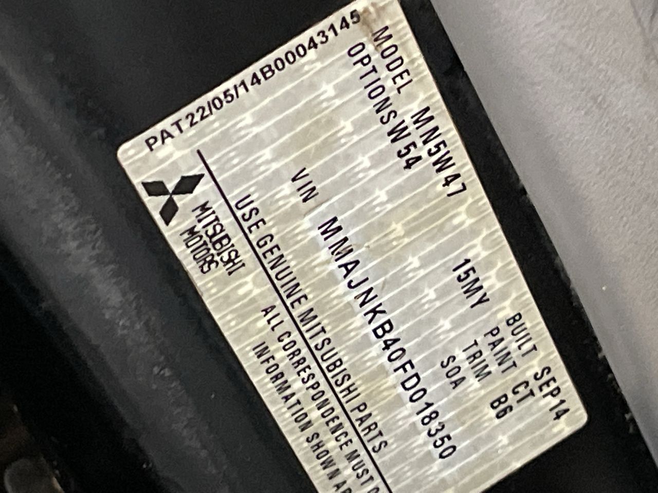 (SN:MMAJNKB40FD018350) (117946-72)