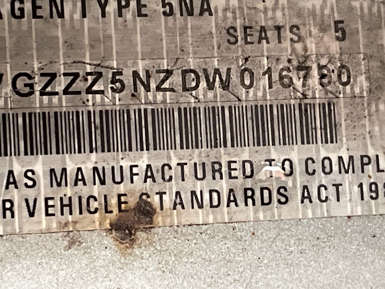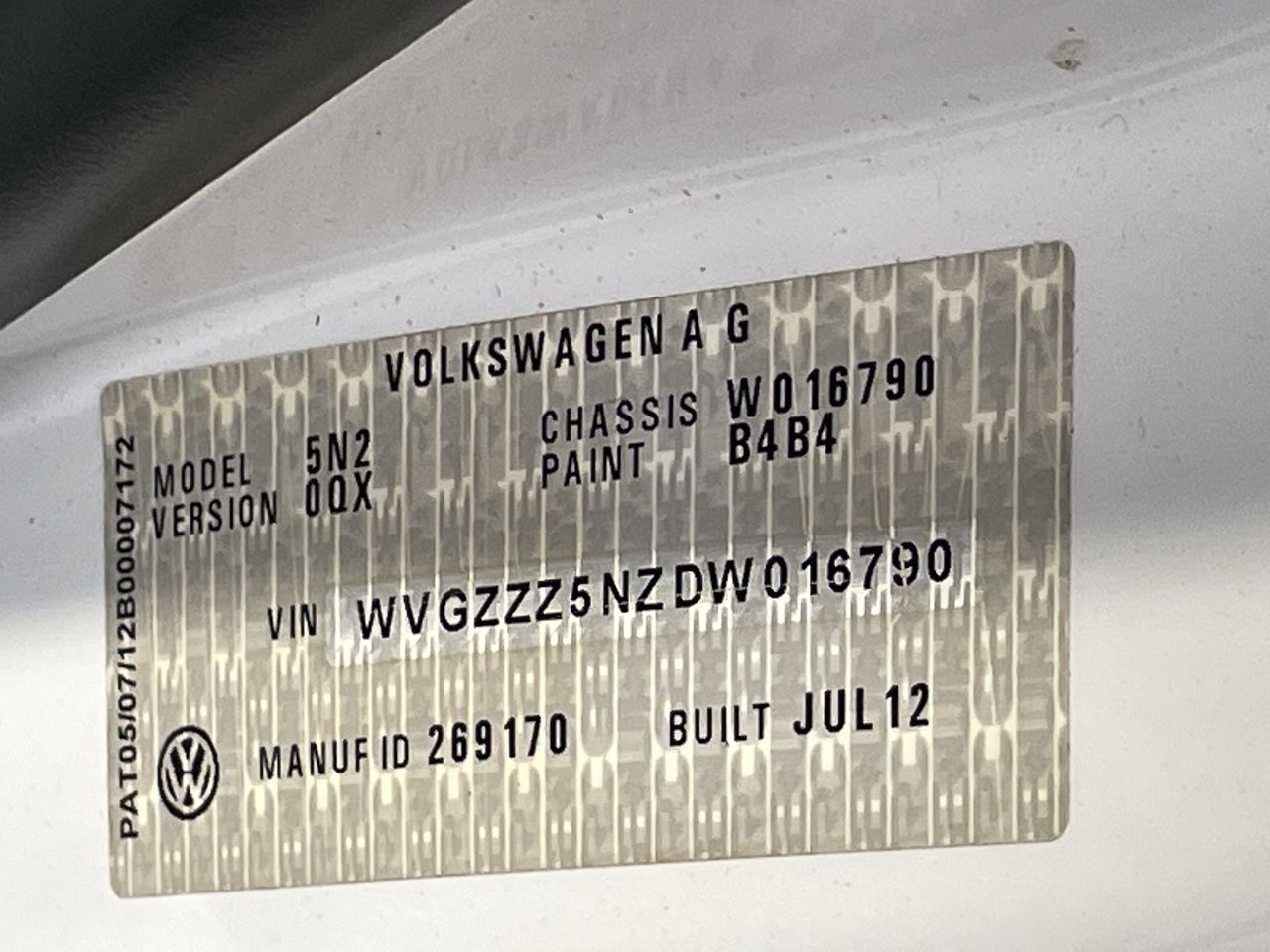 • VIN: WVGZZZ5NZDW016790