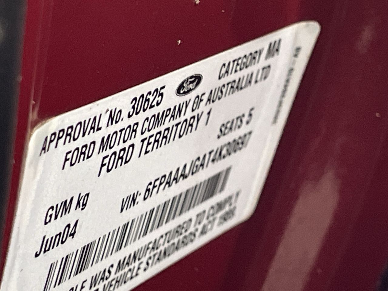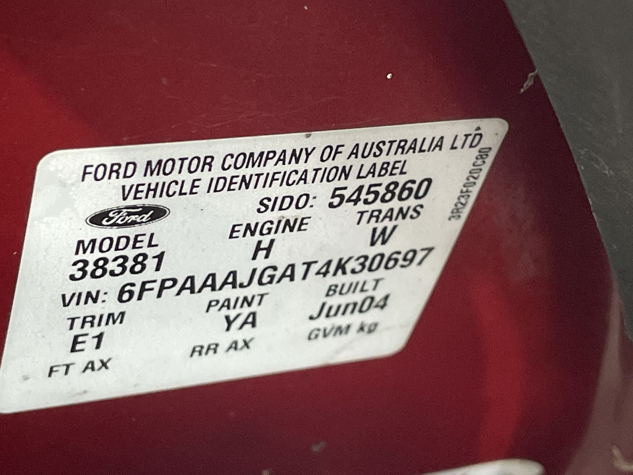 • VIN: 6FPAAAJGAT4K30697
