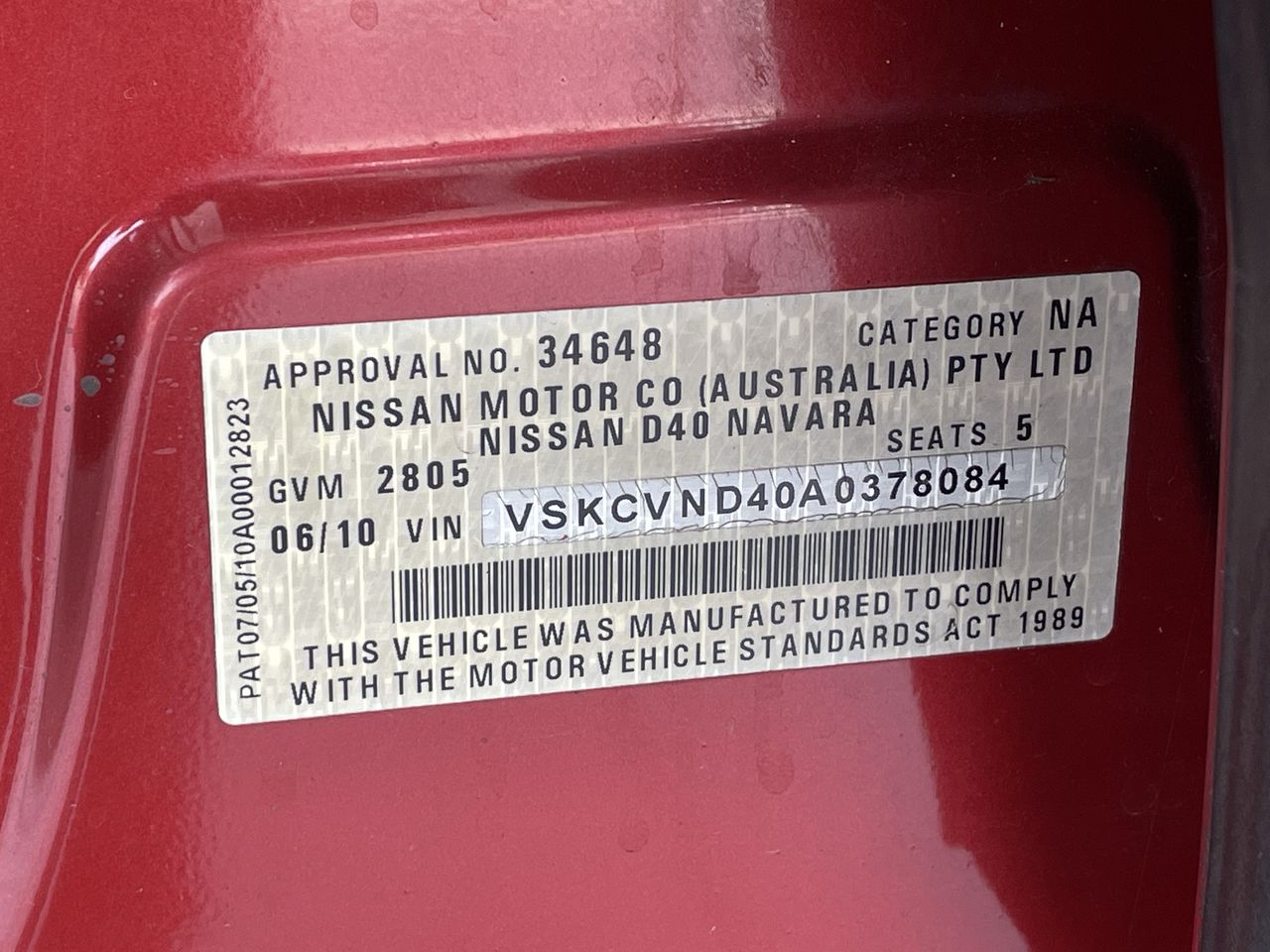 (SN:VSKCVND40A0378084) (104816-2)