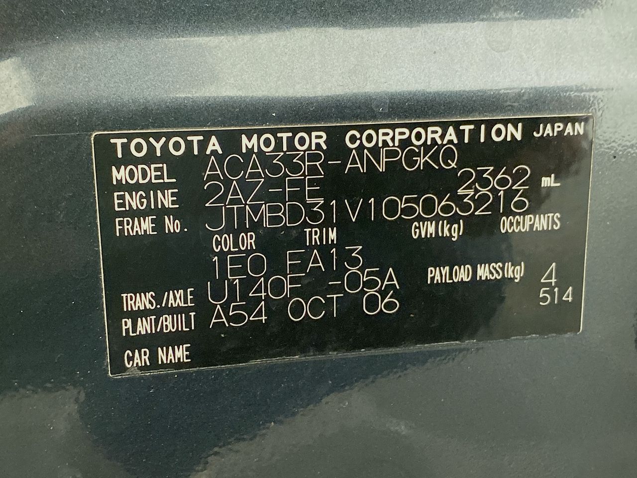 (SN:JTMBD31V105063216) (106367-1489)