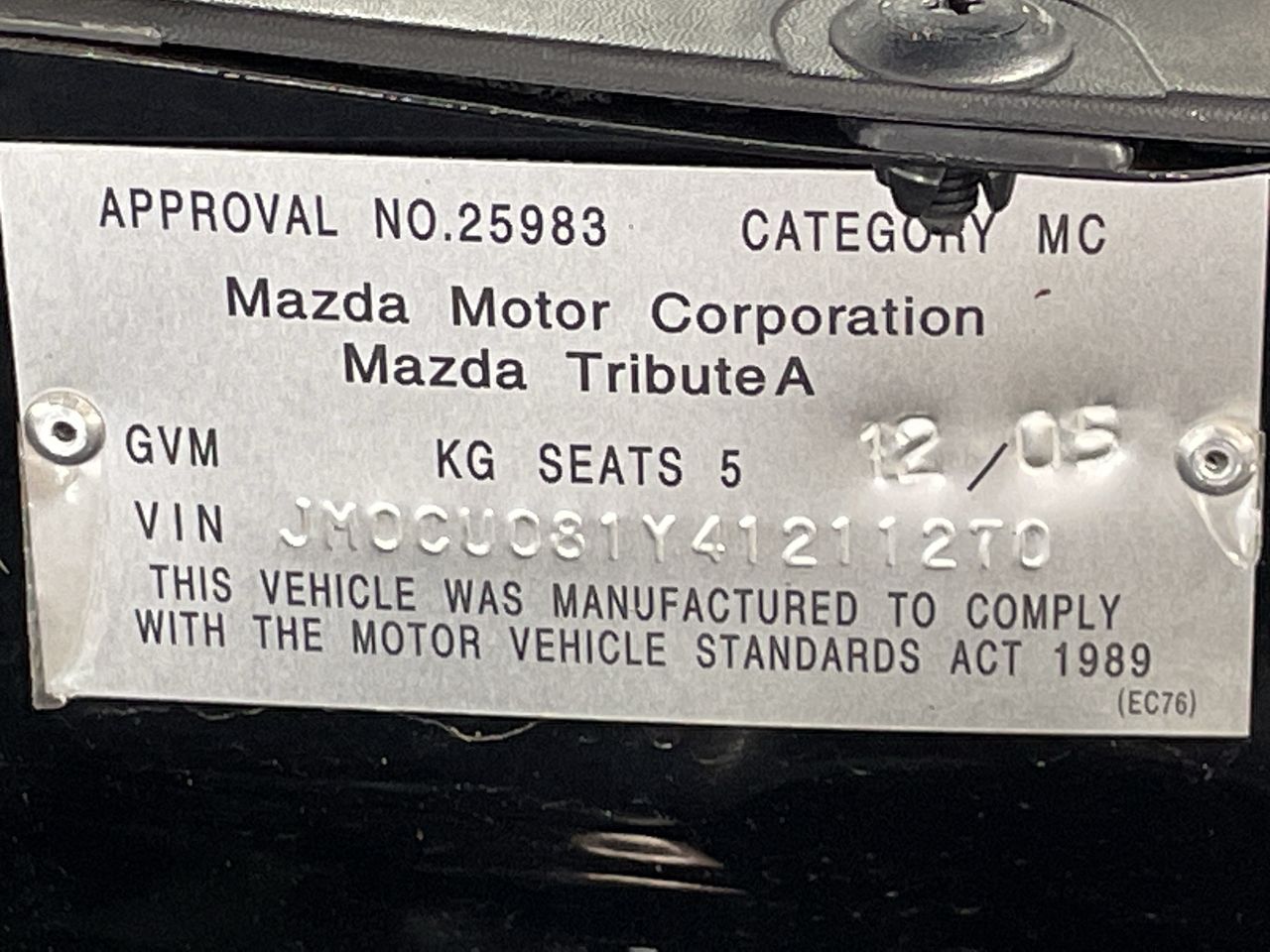 | Part of Sale | 2005 Mazda Tribute CLASSIC 3.0 Auto | ||||||||||||||