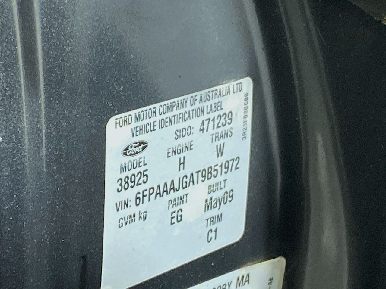 • VIN: 6FPAAAJGAT9B51972