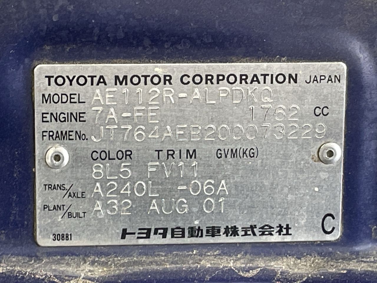 (SN:JT764AEB200073229) (106315-435)