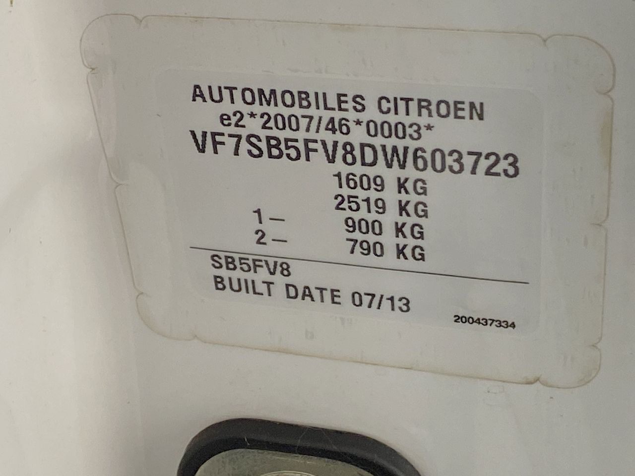 (SN:VF7SB5FV8DW603723) (118256-853)