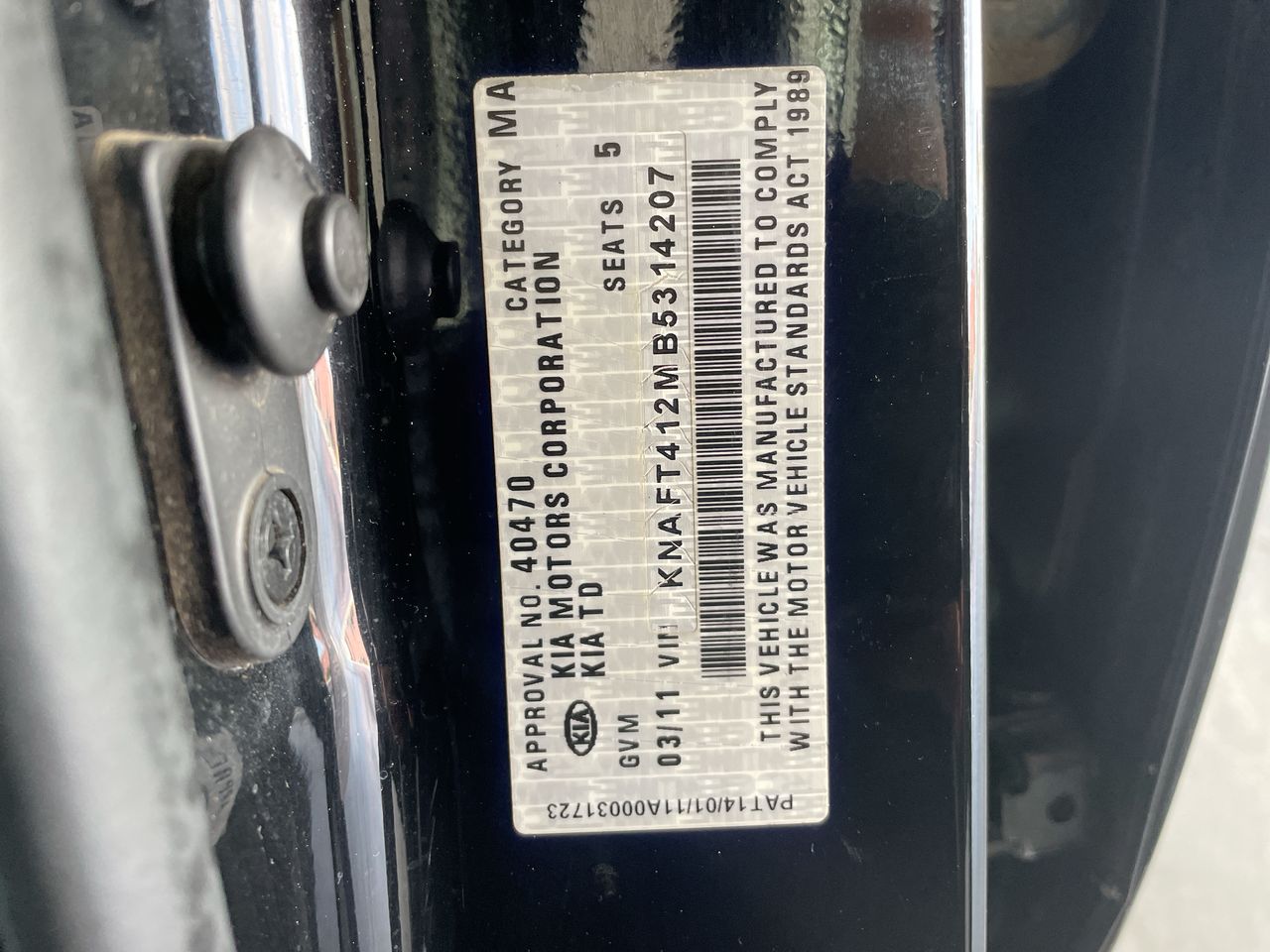 (SN:KNAFT412MB5314207) (110700-7)