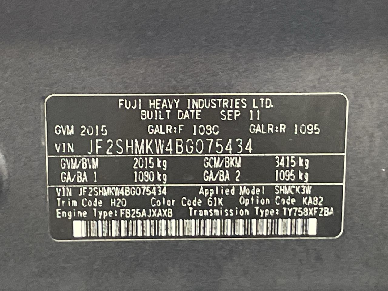 (SN:JF2SHMKW4BG075434) (97242-79)