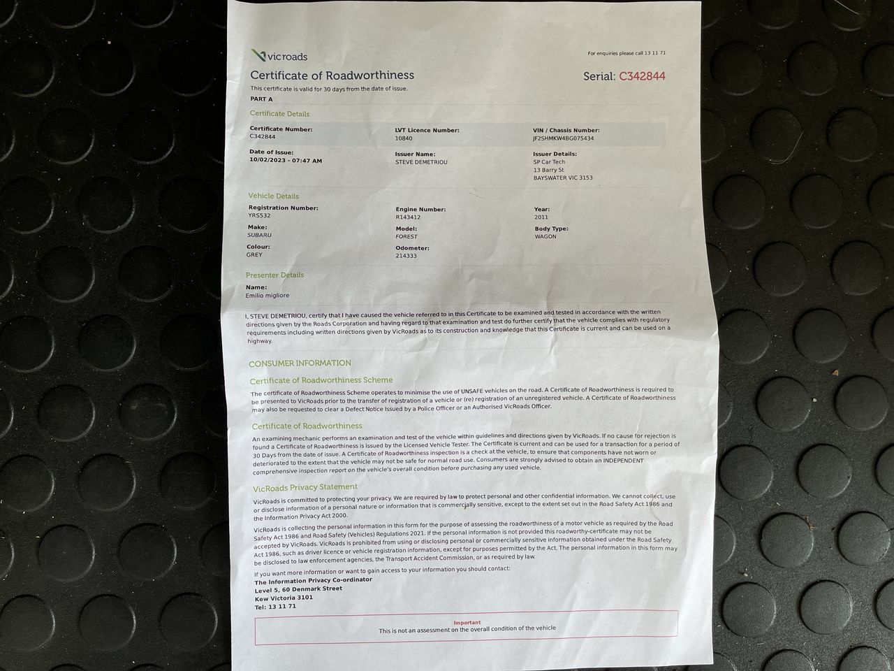 | Part of Sale | 2011 Subaru Forester X S3 Manual Wagon (RWC Issued FEB 10) | ||||||||||||||