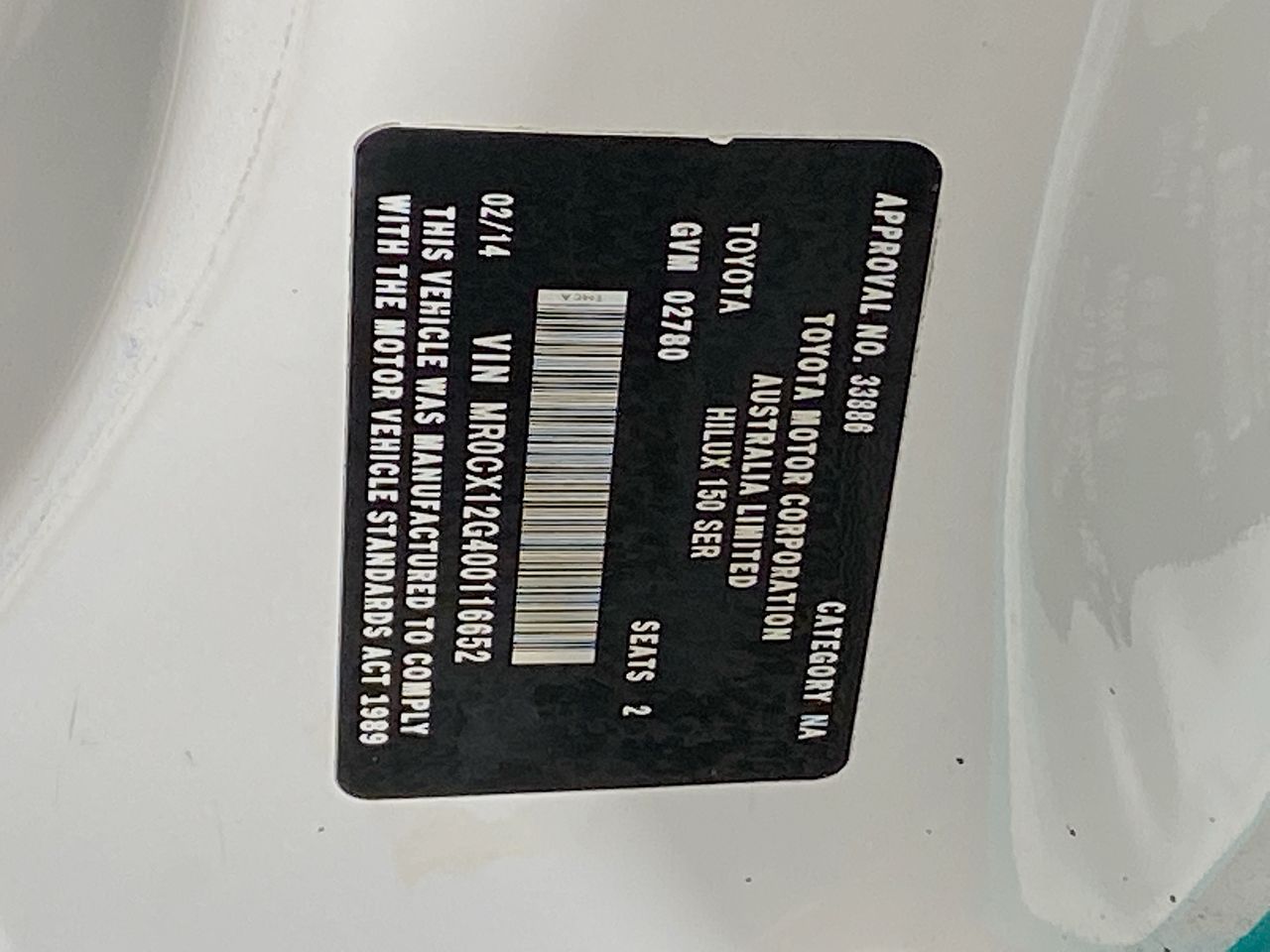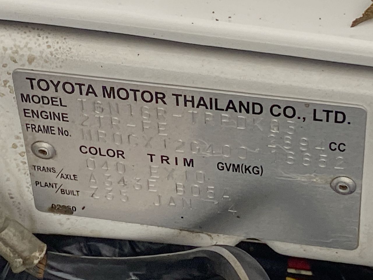 2014 Toyota Hilux 4X2 WORKMATE TGN16R Automatic Cab Chassis