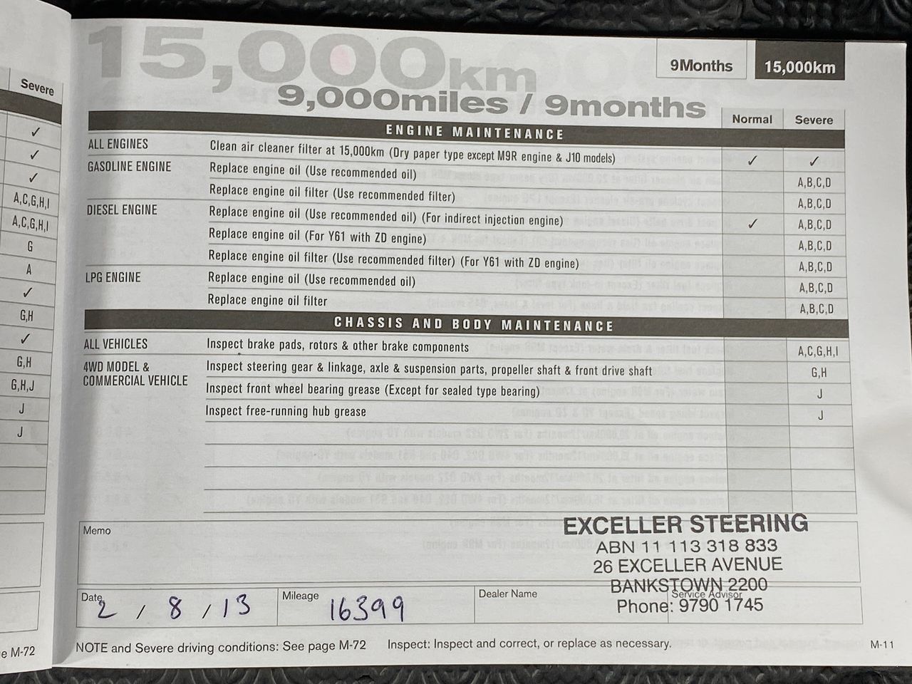 • Odometer Measurement: kilometre