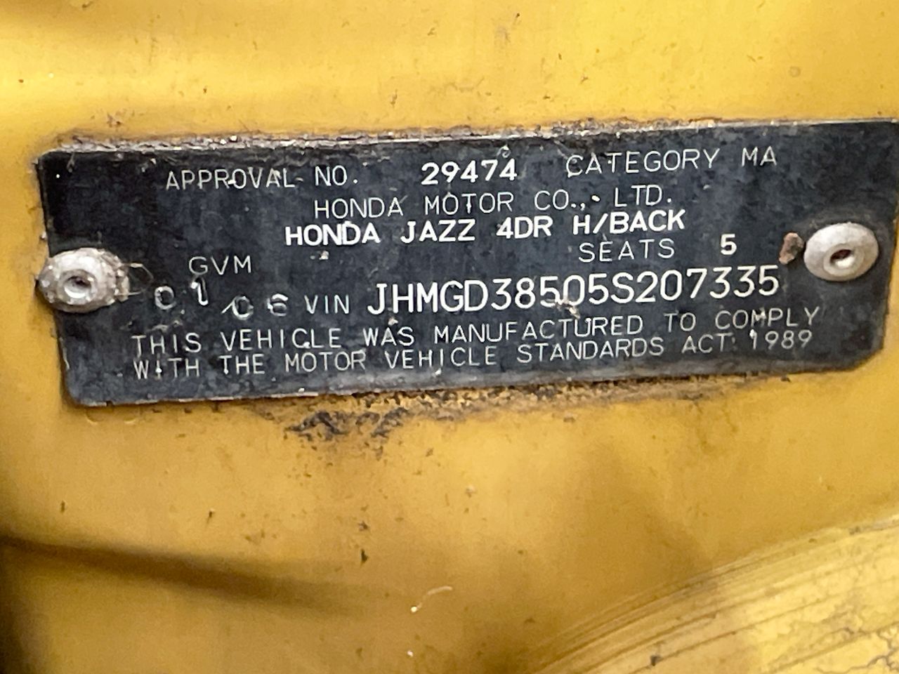 (SN:JHMGD38505S207335) (113022-1707)