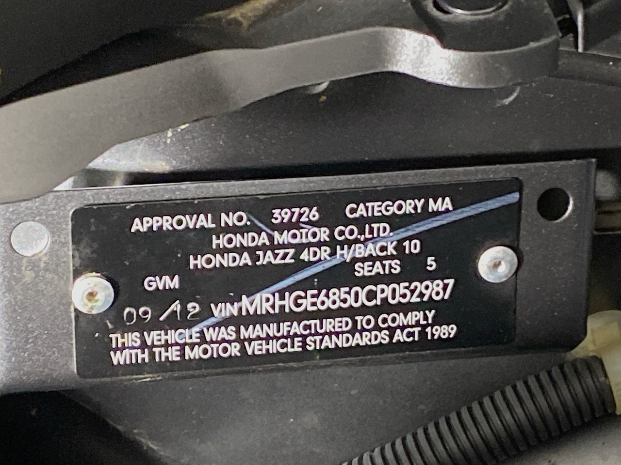 • VIN: MRHGE6850CP052987
