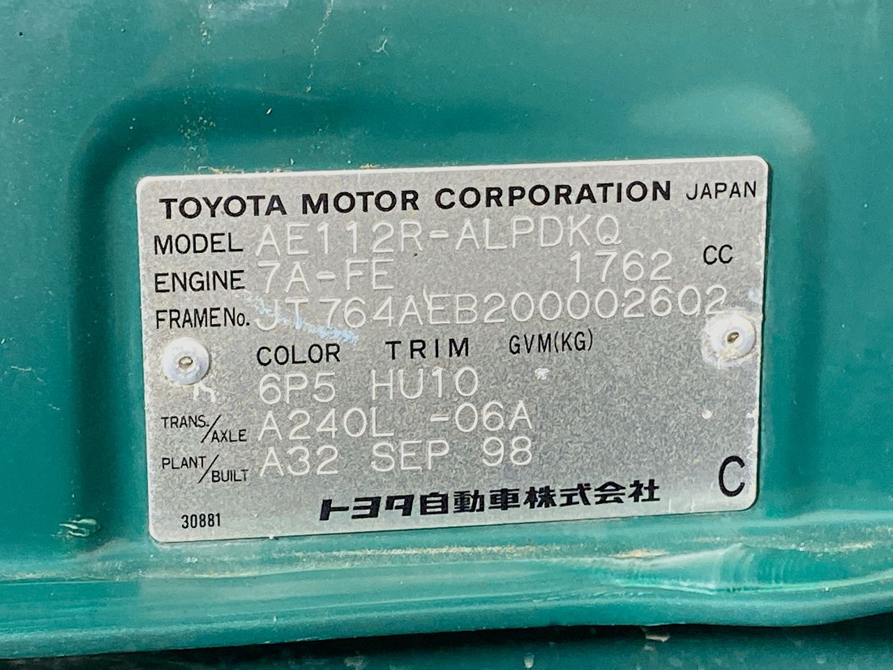 • VIN: JT764AEB200002602