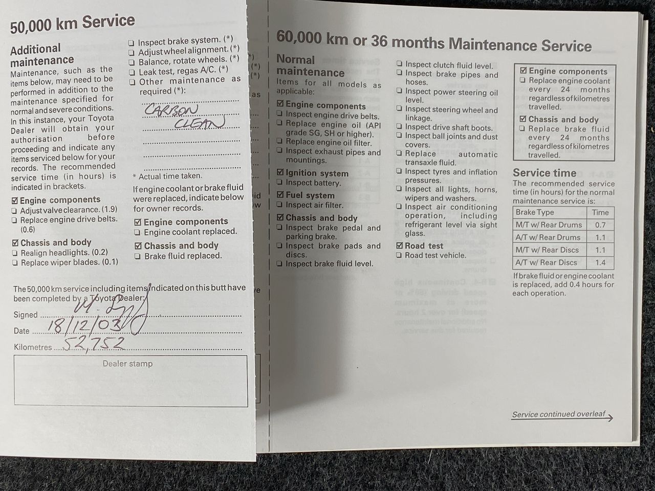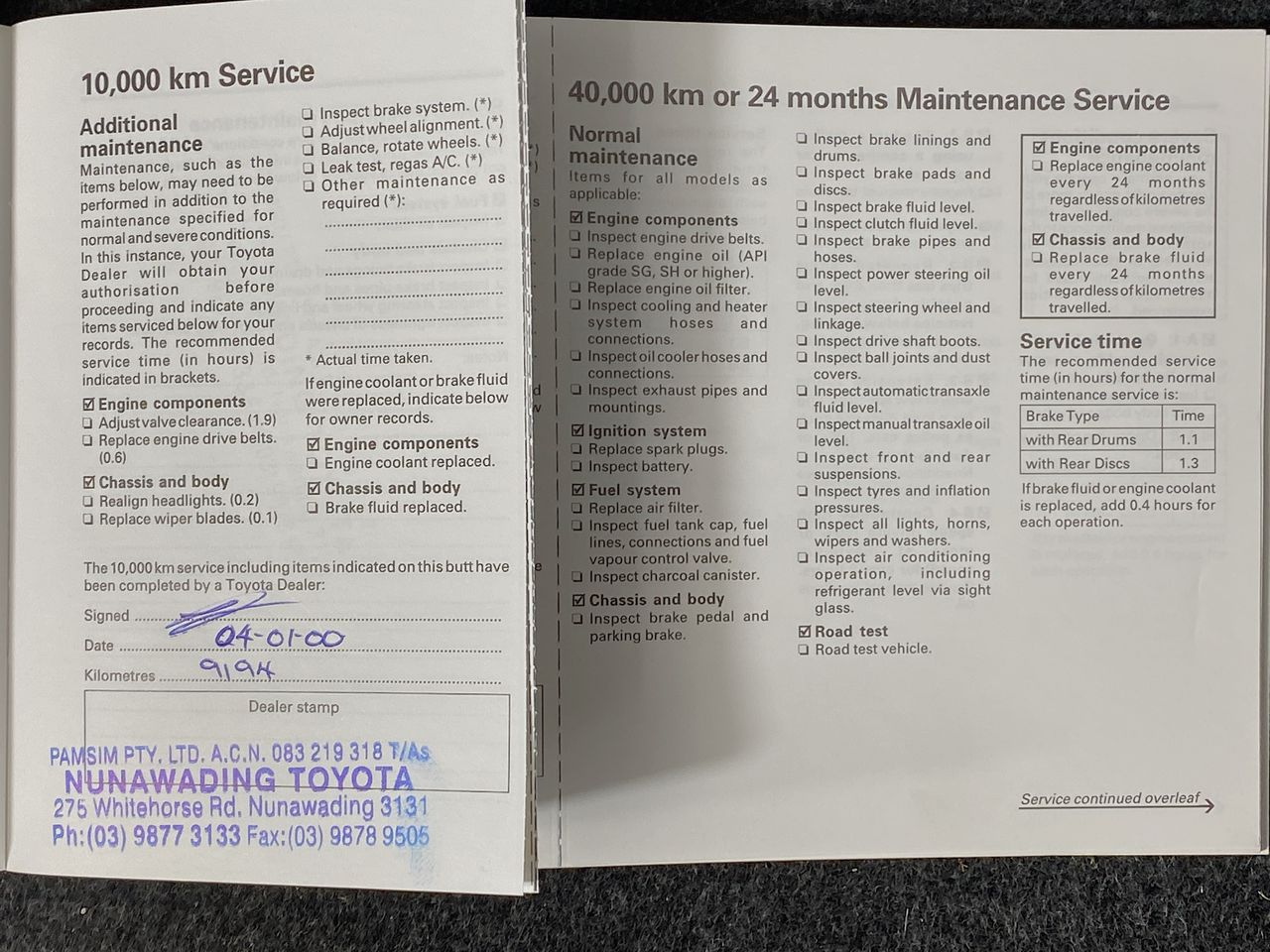 • Service History: Yes