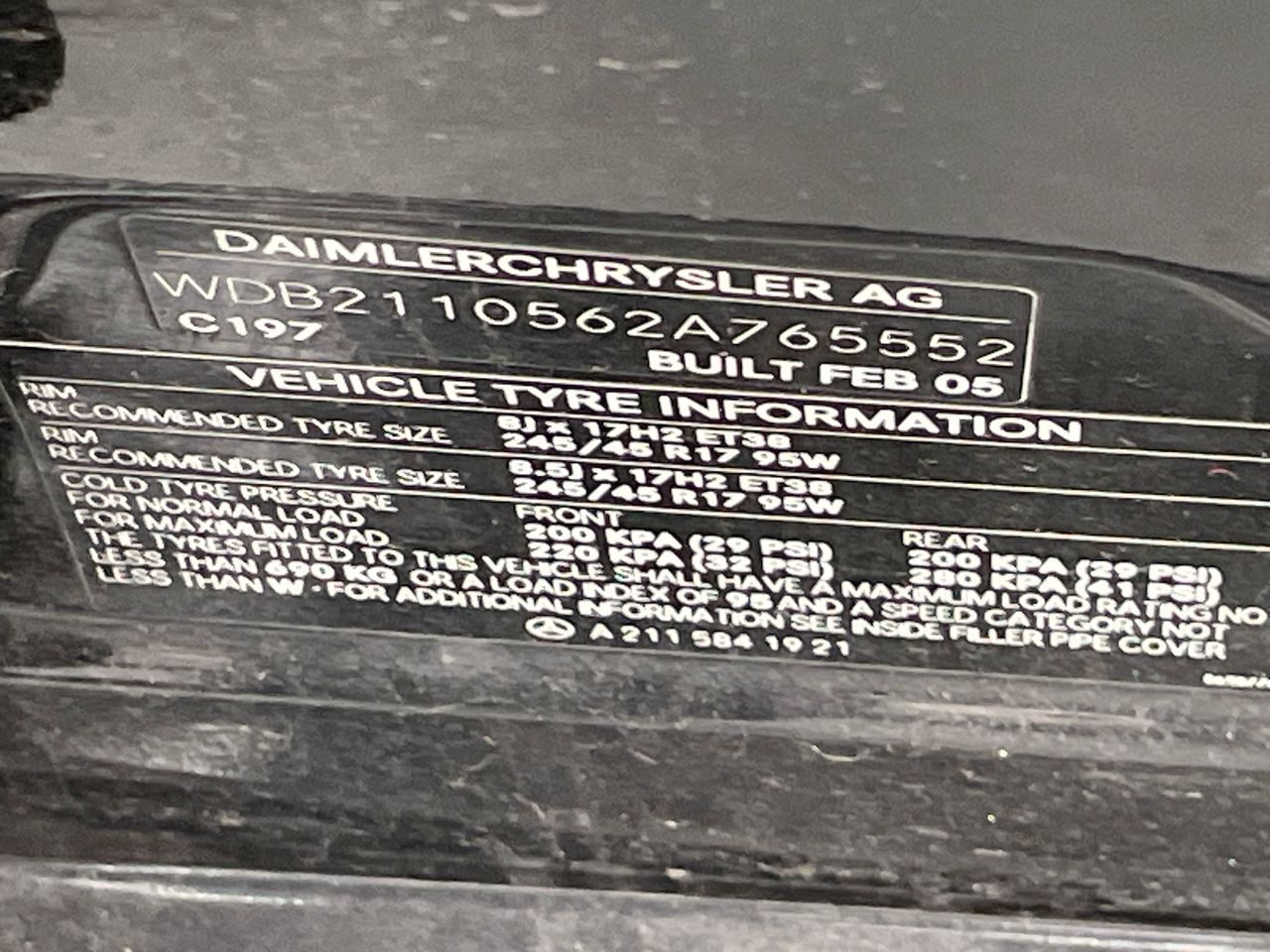 (SN:WDB2110562A765552)